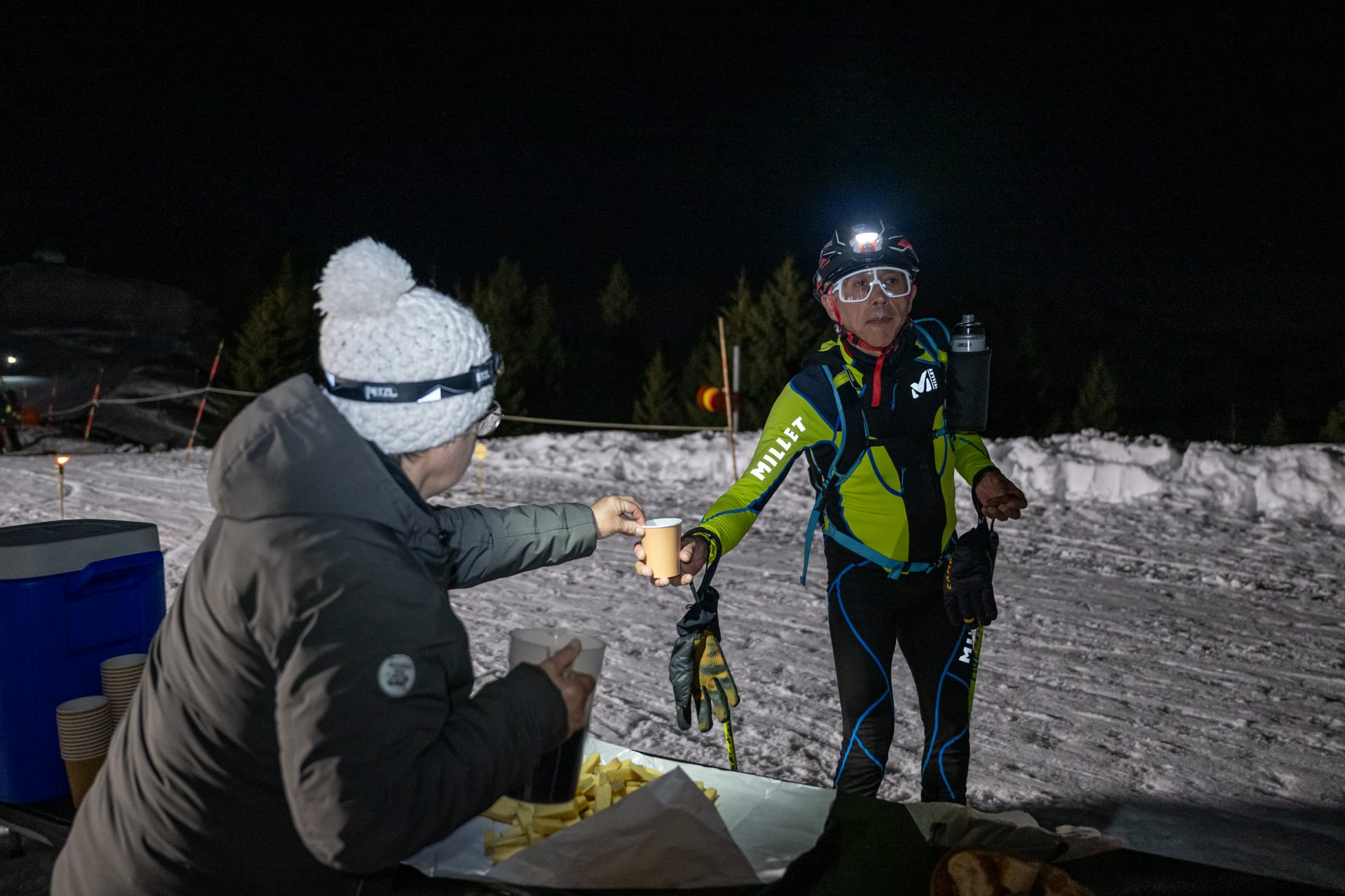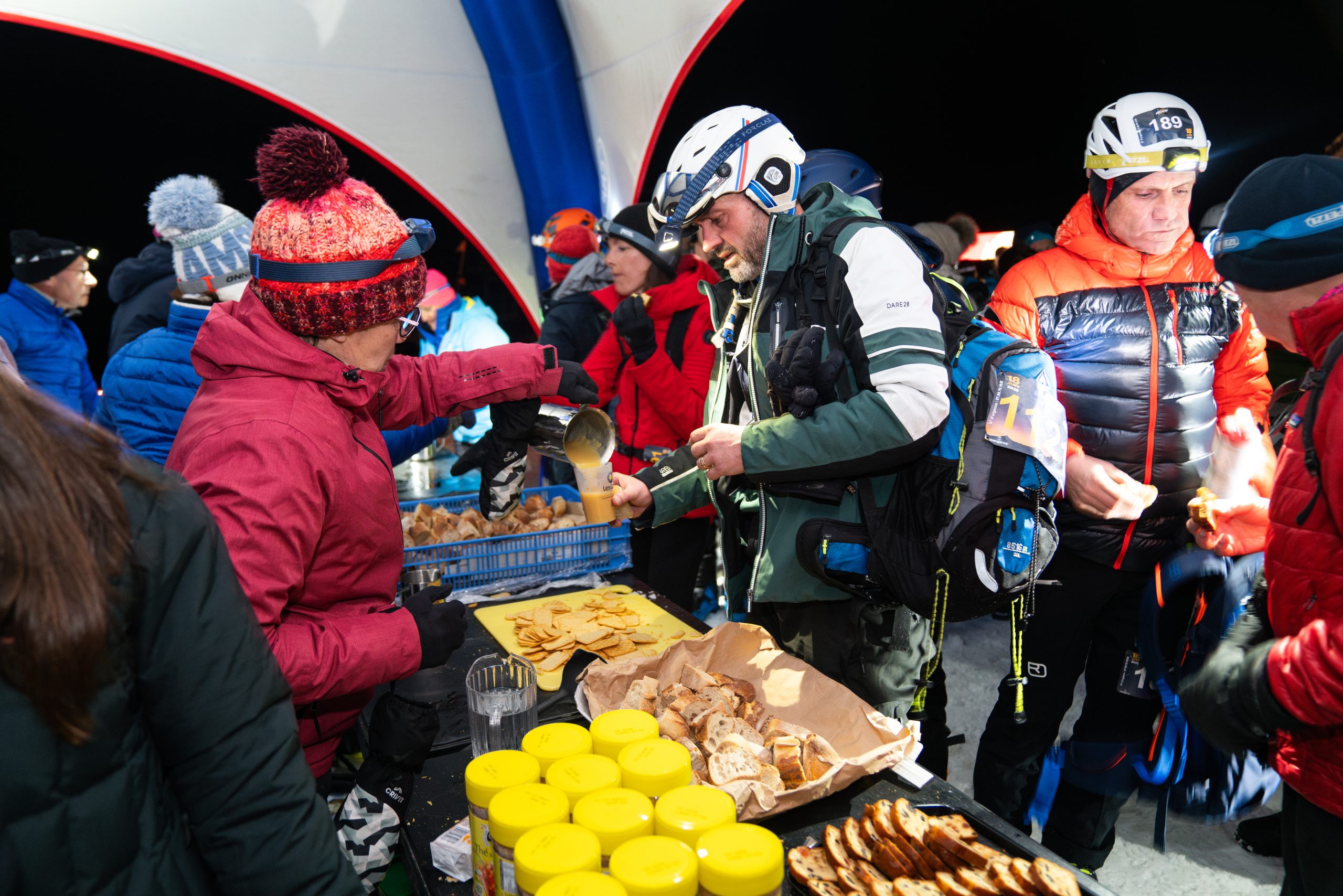 Sur chaque ravitaillement, vous retrouverez de l’eau, du Coca-Cola, du thé chaud, de la soupe, du fromage, pain, charcuterie…